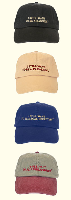 After hearing about the product, a Chairman of a major corporation asked for four hats that said "I Still Want to Be a CEOª" for all of the CEOs that report to him. Upon receiving the hats he wrote a letter back to us thanking us for the hats with the comment "They're great!"